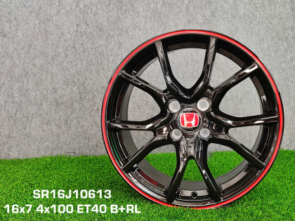 10613 16×7 4×100 ET40 BLACK+RED LIP S/RIMS